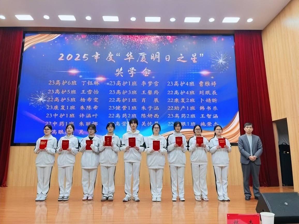 百年卫校绽芳华,医教融合结硕果。2026年1月27日,常州卫生高等职业技术学校与华厦眼科·常州谱瑞眼科医院携手举办2025年度华厦“明日之星”奖学金颁奖典礼!华厦眼科・常州谱瑞眼科医院院长陈兵应邀出席,与常州卫生高等职业技术学校领导、师生代表齐聚一堂,共同见证20名优秀医学学子收获荣誉,续写校企合作共育医疗人才的新篇章。